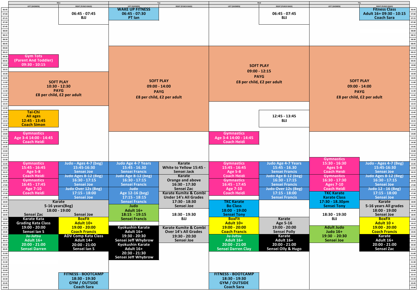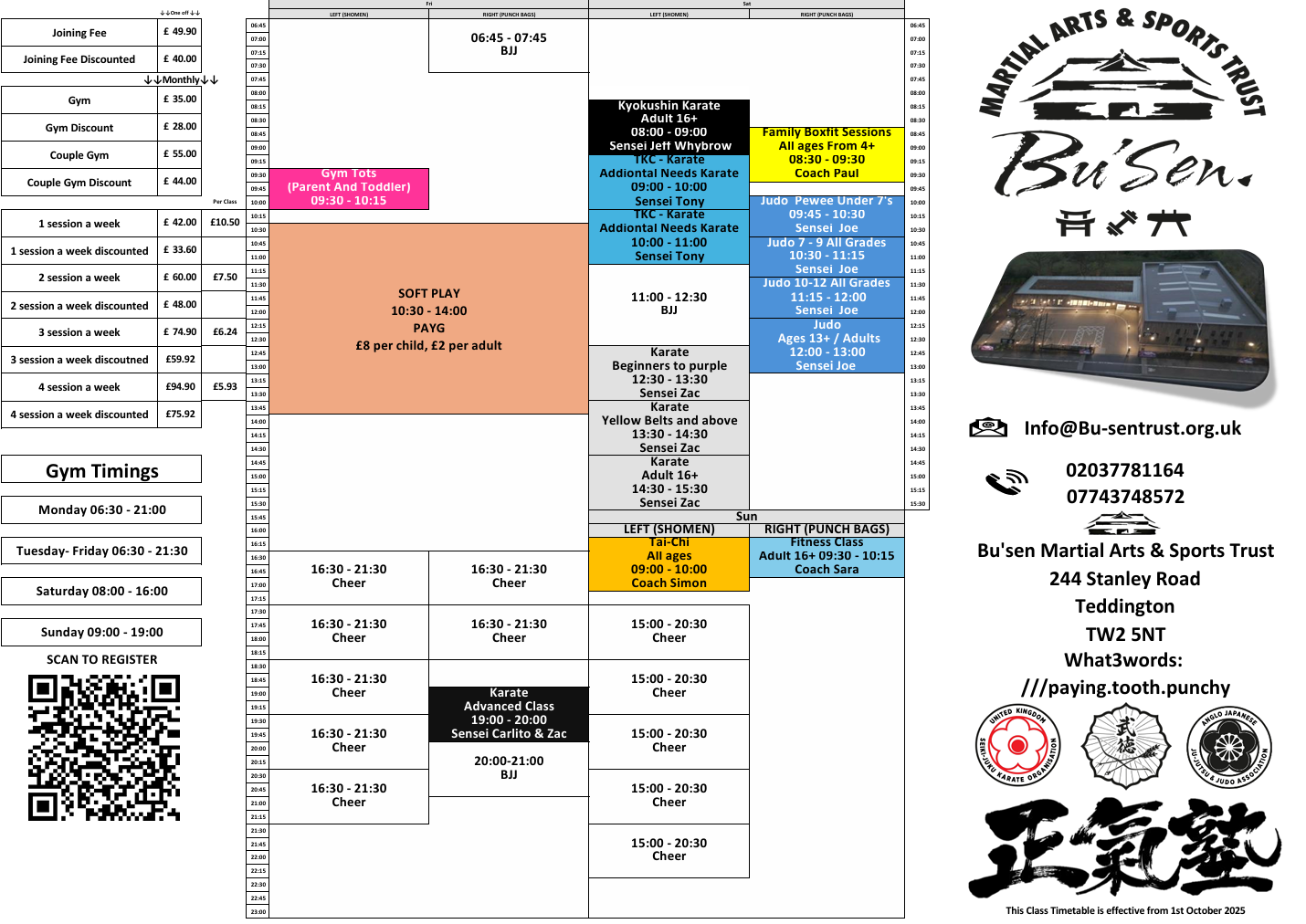 Here’s the updated timetable for Bu’sen Martial Arts & Sports Trust, going live from Saturday 11th October 2025!