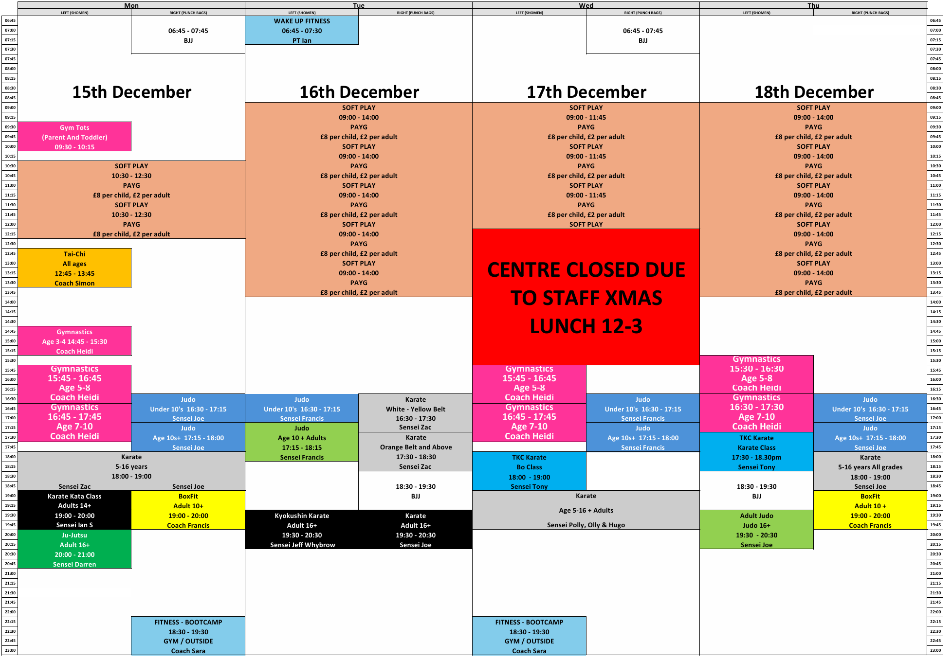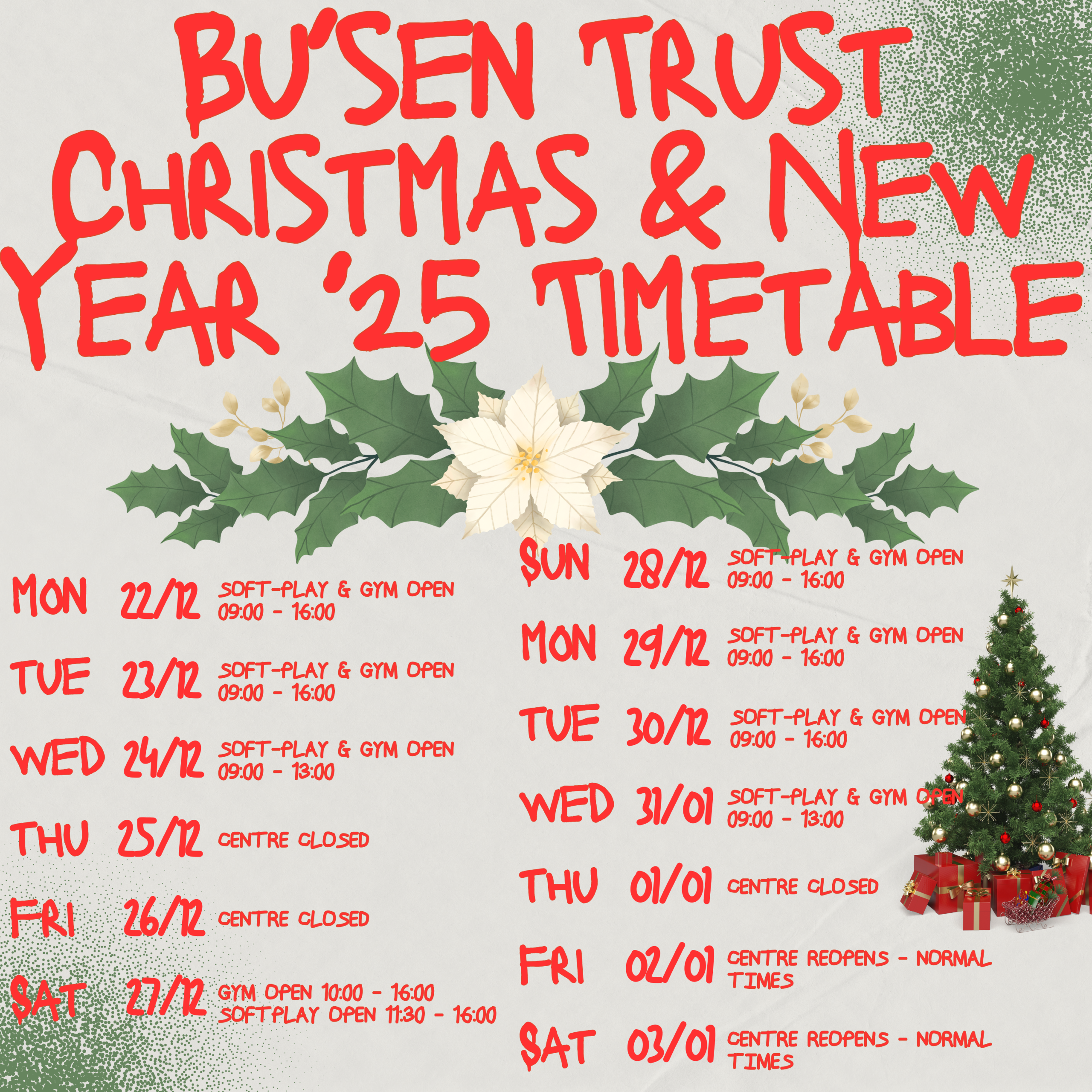 Here’s the updated timetable for Bu’sen Martial Arts & Sports Trust for the Christmas Period of 2025.