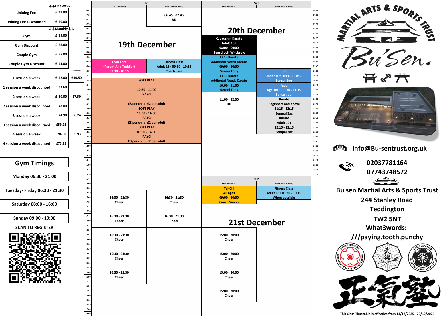 Here’s the updated timetable for Bu’sen Martial Arts & Sports Trust, live from Saturday 2nd January 2026!