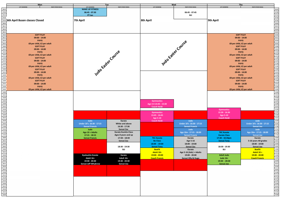 Here’s the updated timetable for the Easter Holidays @ the Bu’sen Martial Arts & Sports Trust, live from Monday 30th March 2026!